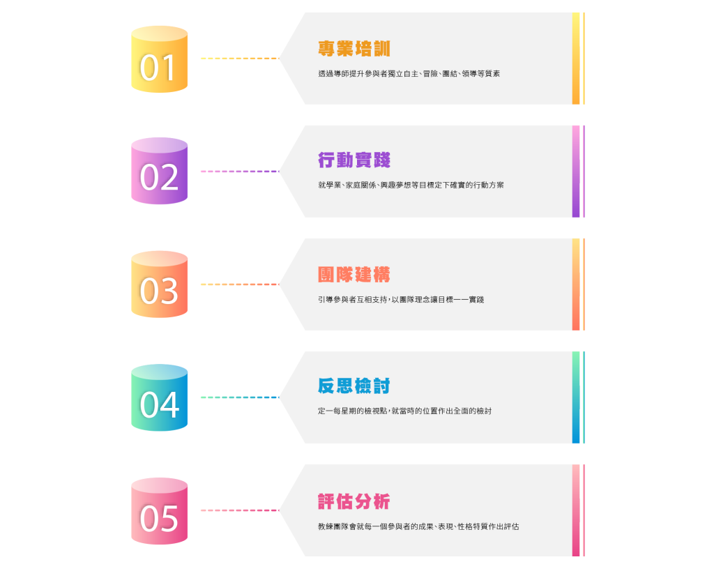 學員透過App設定四大目標(學業/家庭/社區/夢想),系統自動生成進度圖表。